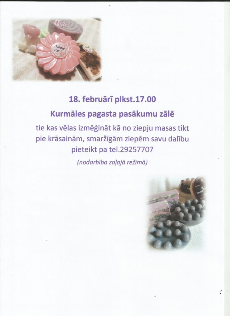 Ziepju darbnīcas nodarbība pārcelta uz 4.martu plkst.17.00